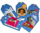 • Personalizzare le cartoline, ritagliandone dli angoli superiori (saranno più facili da inserire ed estrarre) e decorandole. Incollare foto, piccoli ricordi, messaggi, pensieri… Decorare tutte le cartoline ed inserirle nei vari soffietti.