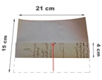 • Piegare verso l’interno, su una larghezza di 4 cm, i due lati opposti (piegare i due lati più lunghi, quelli di 21 cm). Incollare la parte che si sovrappone all’altra, lungo la linea centrale. Si può, eventualmente, utilizzare del nastro biadesivo.