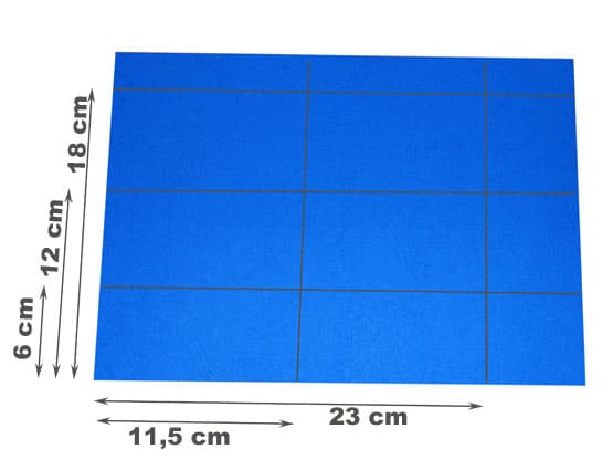 • Preparare le cartoline ricordo da inserire nei soffietti della borsetta porta ricordi. Tracciare 12 cm di 6 cm x 11,5 cm su cartoncino colorato e ritagliarli (cliccare sulle immagini per ingrandirle).