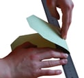 • Aiutandosi con un righello piatto, piegare i due elementi che formeranno la copertina lungo le linee tracciate. Dare forma alla copertina.