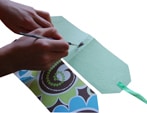 • Incollare o cucire un bottone sulle estremità della borsettina, per decorare o per rafforzare l’attacco del nastro.