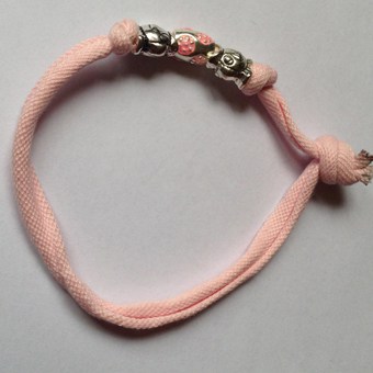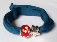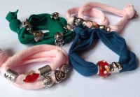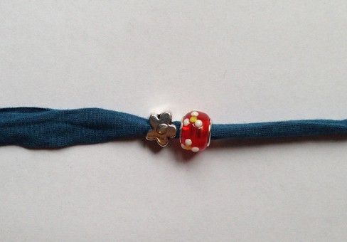 Perle e charms si possono bloccare su un lato del bracciale, facendo dei nodi nel tessuto oppure essere lasciati liberi di scivolare di qua e di là. Vi facciamo vedere qualche soluzione e poi… via alla creatività!