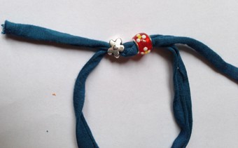 • Infilare qualche perla, charm o ciondolo nella strisciolina di lycra.