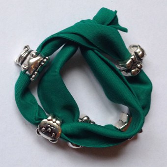 La base del bracciale può essere di tessuto lycra elasticizzato ma può essere facilmente recuperata tagliando vecchie magliette a striscilione o vecchi vestiti da buttare.