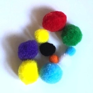 - Prepara una decina di pon pon colorati e di varie dimensioni.