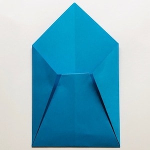 - Piegare la parte inferiore verso l’alto, portando il vertice a circa metà dello spazio superiore, come nell’immagine.