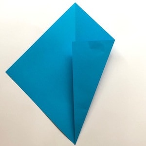 - Prendere il vertice di destra tra le dita e portarlo sulla linea centrale. Piegare, allineando tutto il bordo sulla linea centrale e segnare bene la piega.