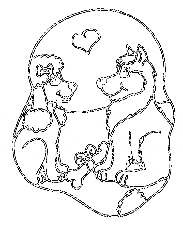 Cagnolini innamorati Un tenero disegno da colorare per San valentino: due cagnolini innamorati e molto romantici! Cliccare sul disegno per stamparlo: