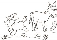 Cagnolino con un asino da colorare Disegno di un cagnolino che corre felice intorno al suo amico l’asinello! Un disegno da stampare e colorare per la gioia e il divertimento dei bambini. Cliccare sul disegno per stamparlo: