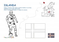 Un disegno di un calciatore della nazionale islandese da stampare e colorare gratuitamente durante gli Europei di calcio. Un’occasione per imparare dove si trova l’Islanda e qual’è la sua bandiera. I bambini, infatti, dovranno collegare il calciatore al suo paese e colorare la bandiera dell’Islanda.