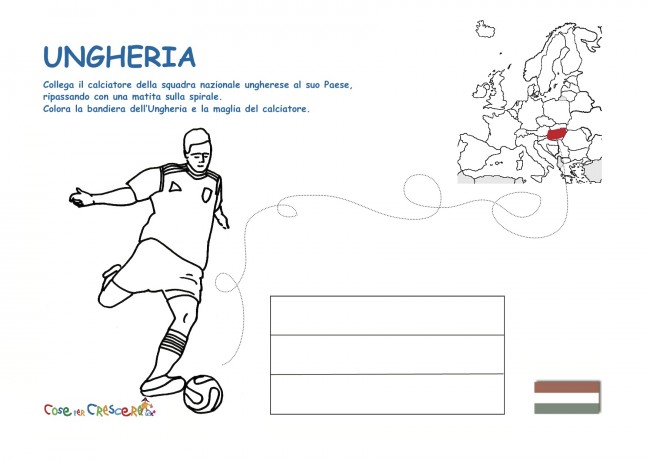 Calciatore Ungherese da colorare Disegno di un calciatore della nazionale dell’Ungheria da stampare e colorare gratuitamente durante gli Europei di calcio. Un modo ludico per imparare dove si trova l’Ungheria e conoscerne la bandiera. DISEGNO DA STAMPARE Clicca sul disegno per stamparlo: