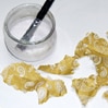 - Con il pennello, spalmare della colla sull’alveolo e incollare un pezzo di carta. Premere delicatamente con la punta delle dita o con il pennello. Ricoprire, con vari pezzi, tutto l’alveolo. Terminare aggiungendo qualche brillantino. Lasciare asciugare.