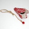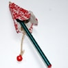 - Tagliare un pezzo di nastro, di cordoncino o di rafia di almeno due volte l’altezza dell’alveolo. Fare un anello (annodandolo) ad una delle estremità ed un nodo all’altra estremità, con o senza perla. Vedi l’immagine.