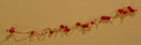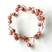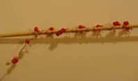 - Infilare le perle sul filo. Arrotolare il filo intorno all’asticella di legno. A metà della lunghezza del filo, tornare indietro, arrotolandolo in senso inverso sull’asticella.