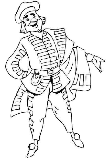 Un disegno per bambini della maschera di Capitan Spaventa, la maschera di Carnevale più famosa della Liguria. Il soldato sognatore dall’aspetto distinto ed elegante è uno dei personaggi più antichi della Commedia dell’Arte. Per stampare il disegno da colorare, basta scorrere la pagina verso il basso e cliccare sul disegno di Capitan Spaventa: si aprirà una seconda finestra con il disegno per bambini in formato pdf da scaricare e/o da stampare gratuitamente.
