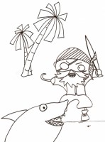 Capitan uncino e lo squalo da colorare Disegno di Capitan Uncino che lotta con un grande squalo uscito improvvisamente dal mare! Un disegno da stampare e colorare gratuitamente. Cliccare sul disegno da stampare: