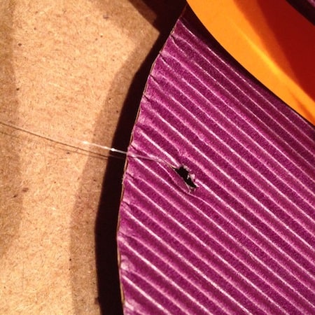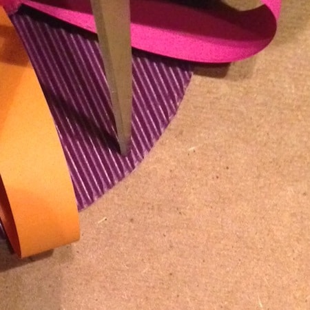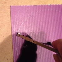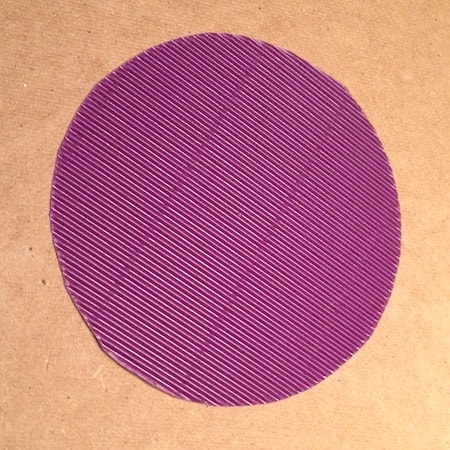 - Con il compasso, tracciare un cerchio di circa 15 cm sul cartone ondulato. Ritagliarlo. Se si usa un cartone riciclato, dipingerlo con un bel colore e lasciarlo asciugare.
