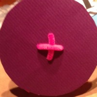 - Fare 4 piccole incisione con un taglierino (usato da un adulto) o con la punta delle forbici nella base del cappellino, nella parte centrale (intorno al cuore). Serviranno ad inserire gli scovolini.