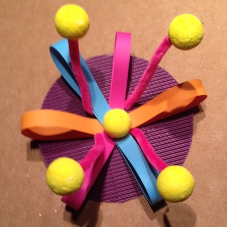 - Unirle al centro, alternando i colori e formando una specie di fiore. Fissarle aiutandosi con una pinzatrice.
