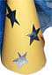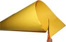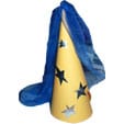 - Arrotolare il cappello in modo da ottenere un’unica punta davanti, aggiustando la base a misura della testa della fata.