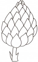 Disegno di un carciofo da stampare e colorare. Il carciofo è una pianta e una verdura tipicamente mediterranea. Esistono diverse varietà di carciofo che può essere con o senza spine, grosso e rotondo o di forma più allungata, di colora verde o tendente più al viola. Sapevate che contiene tantissimo ferro?