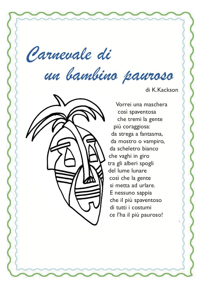 Perché un bambino vuole una maschera che faccia tremare tutti, anche la gente più coraggiosa? Nessuno lo sa ma… è lui il più pauroso di tutti! Una poesia per bambini di K. Kackson.