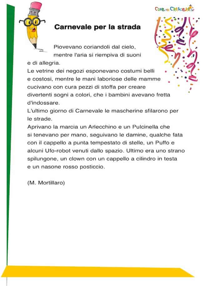 Un testo sul Carnevale scritto da M. Mortillaro, da proporre come dettato durante il periodo di Carnevale e particolarmente adatto ai bambini che frequentano le classi seconda e terza elementare.