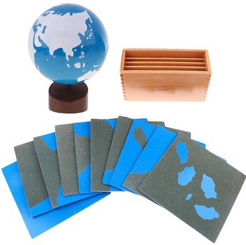Il globo può essere rimosso dal supporto. Le carte geografiche hanno parti in carta vetrata (la terra).