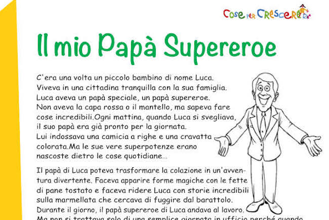 La nostra raccolta e selezione di storie sul papà, racconti per bambini di autori noti e di altri meno noti sulla figura del padre. Storie adatte ai bambini che frequentano la scuola primaria e la scuola dell’infanzia, tutte con una versione da stampare gratuitamente.