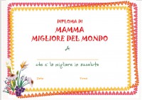 Ogni bambino può scegliere quale attestato conferire, trovare quello che più si addice alla sua mamma mamma. Un bel pensiero originale e gradito per l’attenzione con la quale è stato pensato e scelto. Se siete insegnanti, fare preparare dei diplomi ai bambini può essere uno spunto per un esercizio: oltre a compilare l’attestato, ogni alunno potrebbe scrivere una letterina o un pensiero per spiegare la sua scelta e accompagnare il diploma.