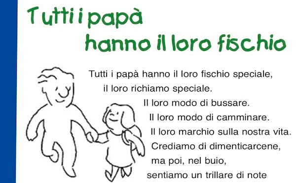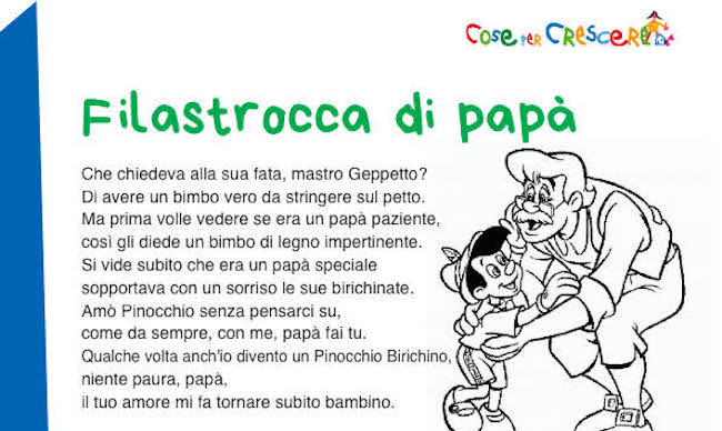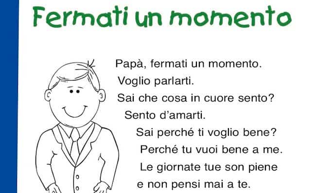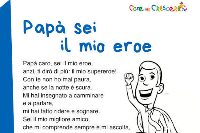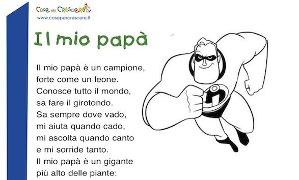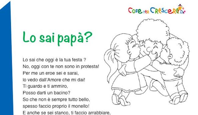 Vedi anche: Lavoretti per la Festa del papà – Biglietti d’auguri per la Festa del papà – Disegni per la Festa del papà – Canzoni per la Festa del papà – Quando è la Festa del papà – Diplomi per la Festa del papà – Storie sul papà