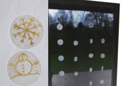 Con disegni dei bambini: ritagliare e appendere le loro creazioni natalizie.