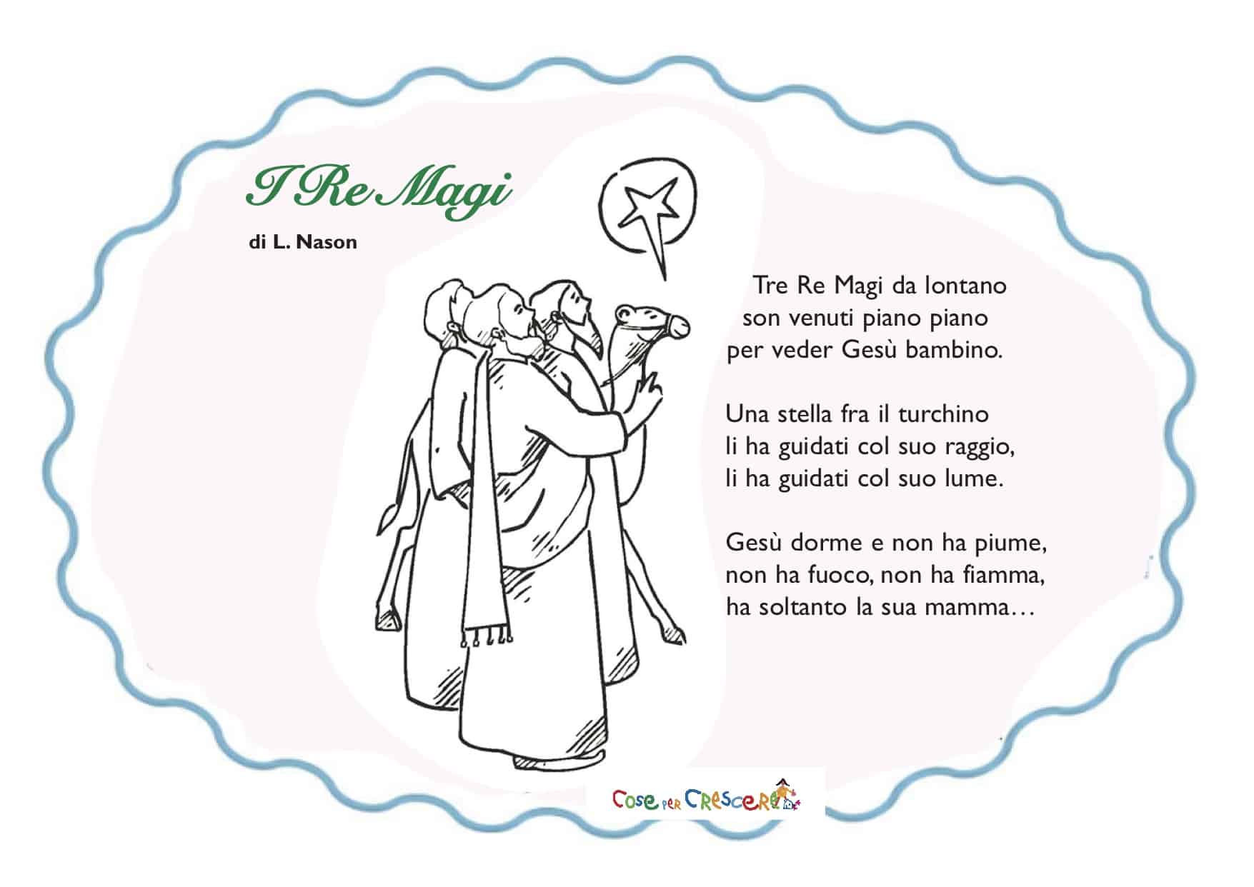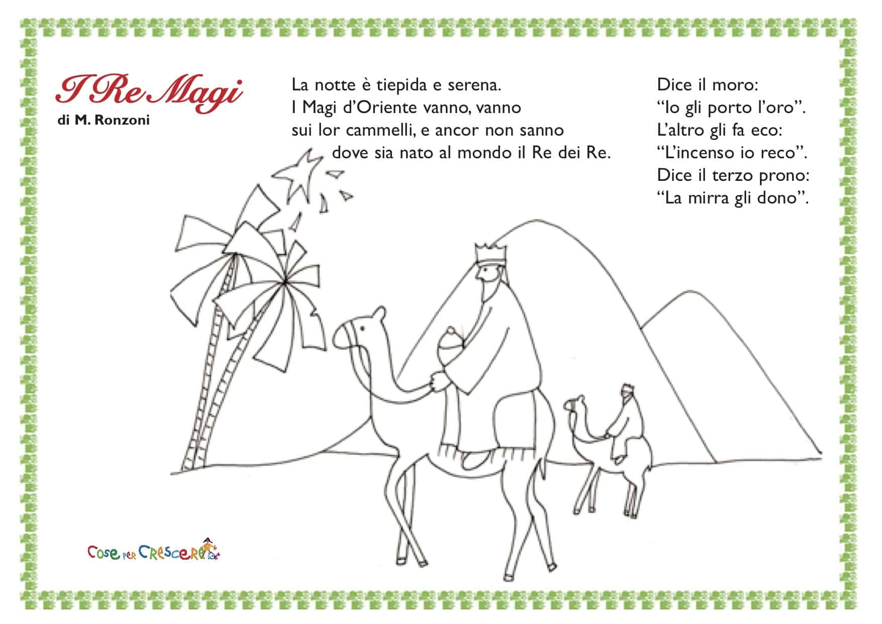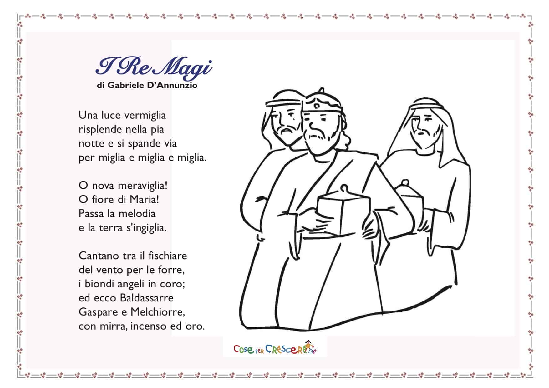 - Attività correlata: Organizza una piccola recita in cui i bambini impersonano i Magi, recitando i versi della poesia.
