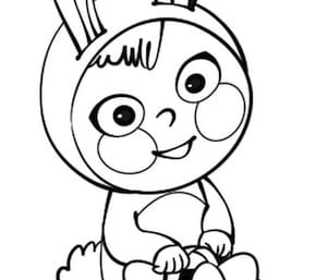 - Coniglietti pasquali sorridenti con linee morbide e facili da colorare.