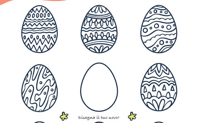 - Disegni geometrici con uova decorate, per migliorare la precisione nel colorare.