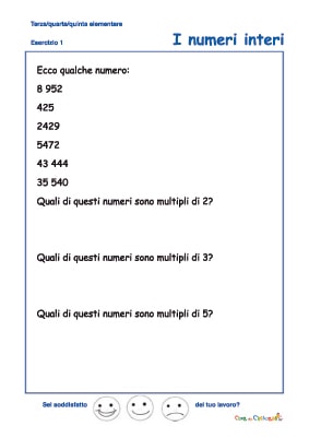 Esercizi e schede di matematica da stampare gratuitamente e da proporre ai bambini di terza elementare durante le vacanze.
