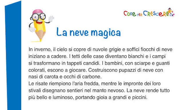💡 Suggerimento pedagogico: prima del dettato, leggi insieme ai bambini alcune parole “difficili” che incontreranno nel testo, spiegandone il significato. Questo è particolarmente importante per i bambini stranieri o con difficoltà linguistiche.