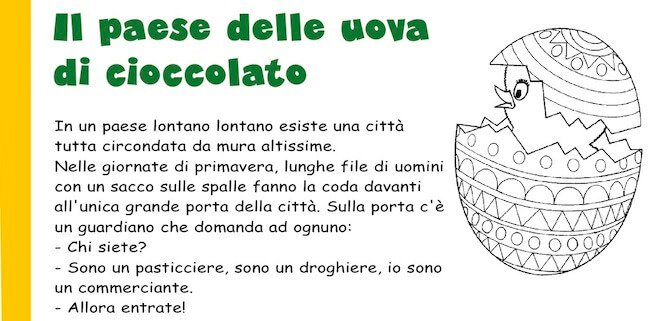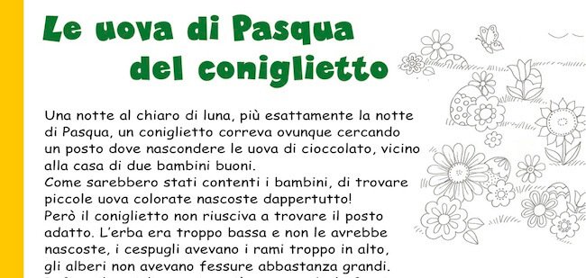 Come tutte le nostre storie per bambini, anche le nostre storie sulla Pasqua sono proposte sia da leggere online che in una versione che è possibile scaricare e/o stampare direttamente e illustrata con un disegno che i bambini potranno divertirsi a colorare.