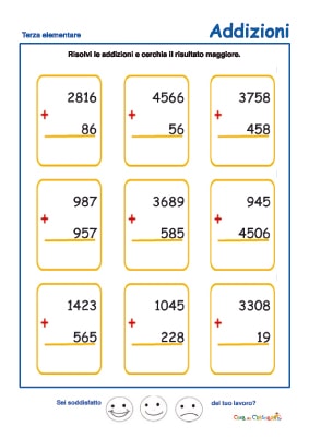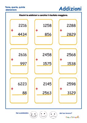 Scheda con diverse addizioni per i bambini di terza, quarta e quinta elementare