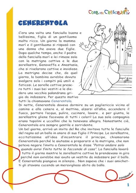 Ecco la fiaba di Cenerentola raccontata in modo semplice e coinvolgente, adatta per essere letta in classe, in famiglia o durante un laboratorio didattico. In fondo alla pagina troverai anche la Cenerentola fiaba da stampare, completa di disegni da colorare per bambini.