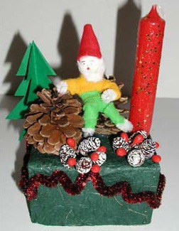 Un centro tavola di Natale da preparare con i bambini. Un lavoretto da fare con loro per preparare le feste e coinvolgerli nei preparativi. Questo centro tavola ha come protagonista un piccolo elfo natalizio contornato da pigne, candele e un piccolo albero di natale di carta.