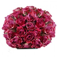 - Infilare le rose una dopo l’altra nella sfera di spugna, iniziando dall’alto. Le rose devono essere tutte una molto vicina all’altra fino a ricoprire completamente la sfera di spugna.