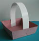 - Nel cartoncino, ritagliare una grande fascia ed incollarla sul cestino in modo da formare un manico.