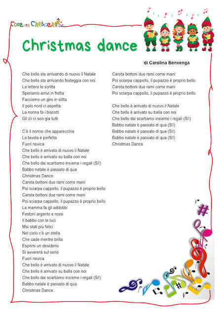 Vi propongo un’allegra canzone di Natale per bambini, Christmas Dance di Carolina Benvenga tratta dall’album Carolina & Topo Tip: un Natale favoloso. Una canzone di Natale per bambini da ballare, adatta sia ai bimbi della scuola dell’infanzia che ai bambini della scuola primaria, con il video per ascoltarla, il testo da leggere online e da stampare gratuitamente, scorrendo la pagina verso il basso.