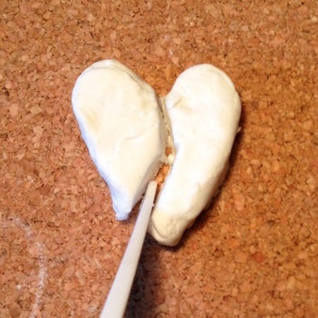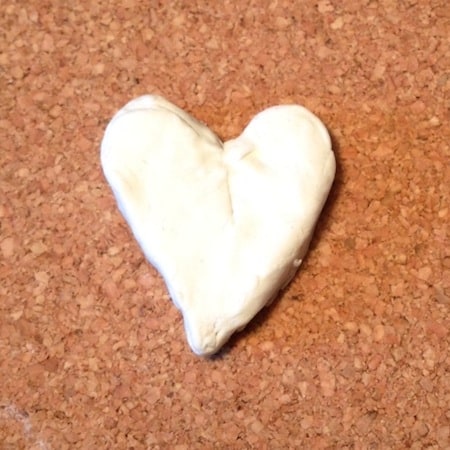 - Con la punta di un coltellino di plastica o di un bastoncino, disegnare un cuore e eliminare la pasta da modellare in eccedenza.