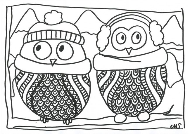 Un disegno da proporre ai bambini durante la stagione piĂą fredda dell’anno: 2 civette in inverno da colorare, due civette, tipici e buffi uccelli dei nostri boschi, che sembrano un po’ preoccupate… ma ben al caldo con il loro berretto di lana e il paraorecchie! Per stampare il disegno, scorri la pagina verso il basso.