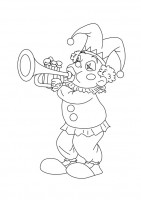 Clown suonatore da colorare Un disegno di un tenero clown suonatore di tromba da stampare e colorare con tanti colori diversi! Un disegno per Carnevale da stampare e colorare gratuitamente. DISEGNO DA STAMPARE Clicca sul disegno per stamparlo:
