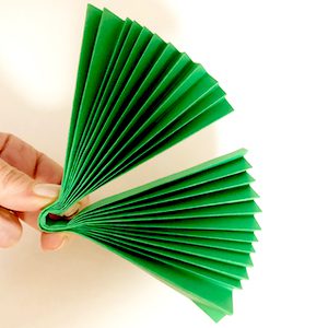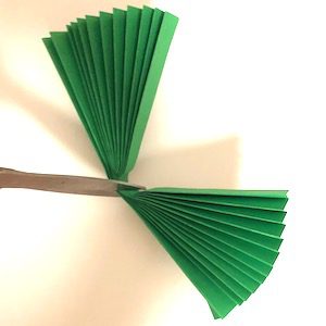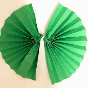 - Apri entrambe le parti a ventaglio e uniscile, incollandole o meglio (e più facilmente) pinzandole.