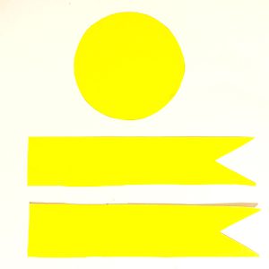 - Disegna e ritaglia un cerchio e 2 nastri in una carta di un altro colore. Per disegnare un cerchio perfetto, usa un bicchiere o qualsiasi altro oggetto tondo della dimensione giusta.