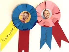 Una coccarda promosso di fine anno scolastico da conferire ai bambini per gratificarli e festeggiare il loro passaggio nella classe successiva. Una coccarda da stampare gratuitamente, meglio se su un foglio di cartoncino (del tipo da disegno, che si può abbinare a un diploma per la fine dell’anno scolastico. La coccarda si può appuntare con una semplice spilla da balia.